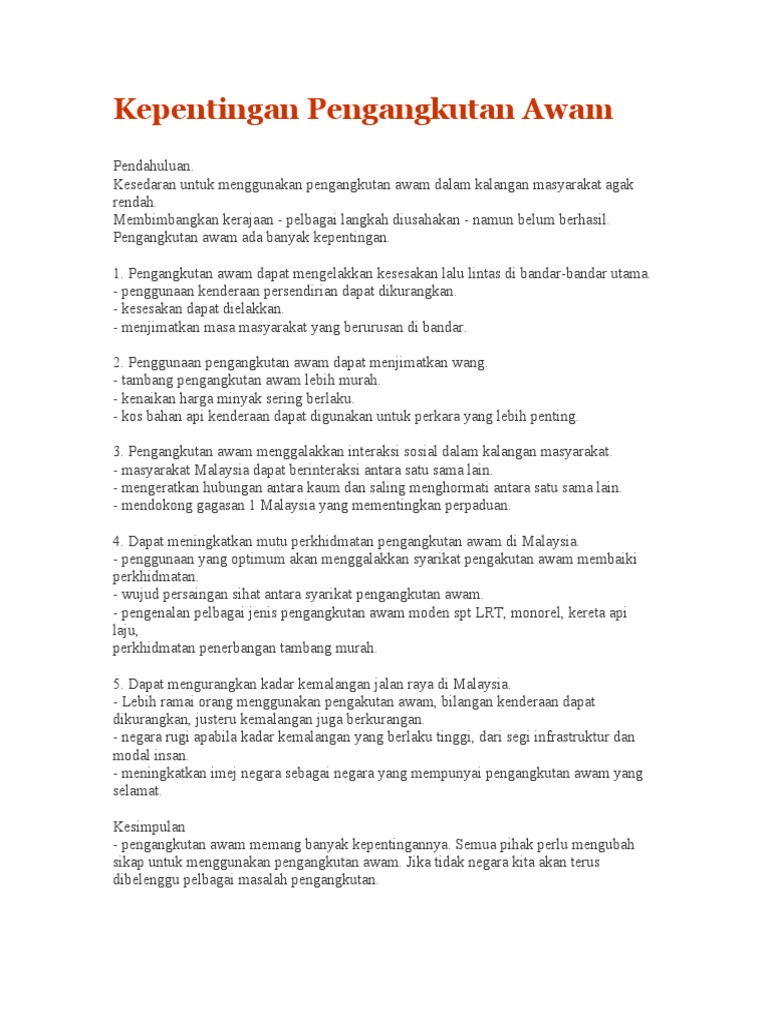 Kepentingan Pengangkutan Awam Di Pdf